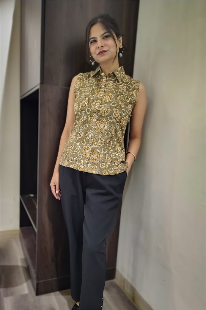 Chaitasri Cambric Cotton Printed Sleeveless Shirt