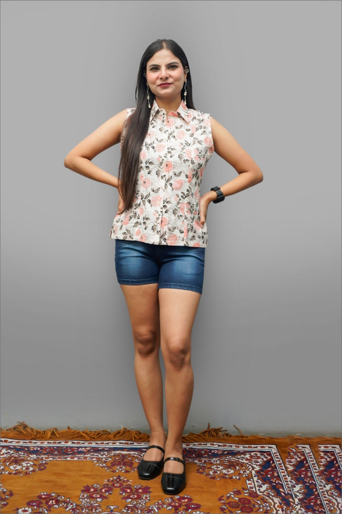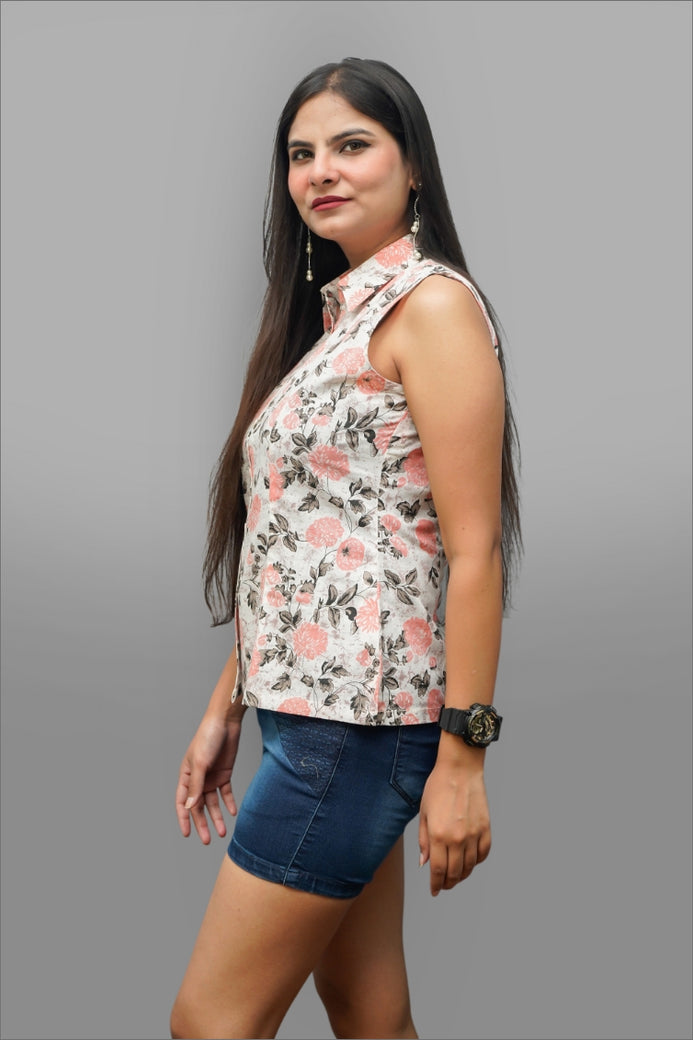 Chaitasri Cambric Cotton Printed Sleeveless Shirt