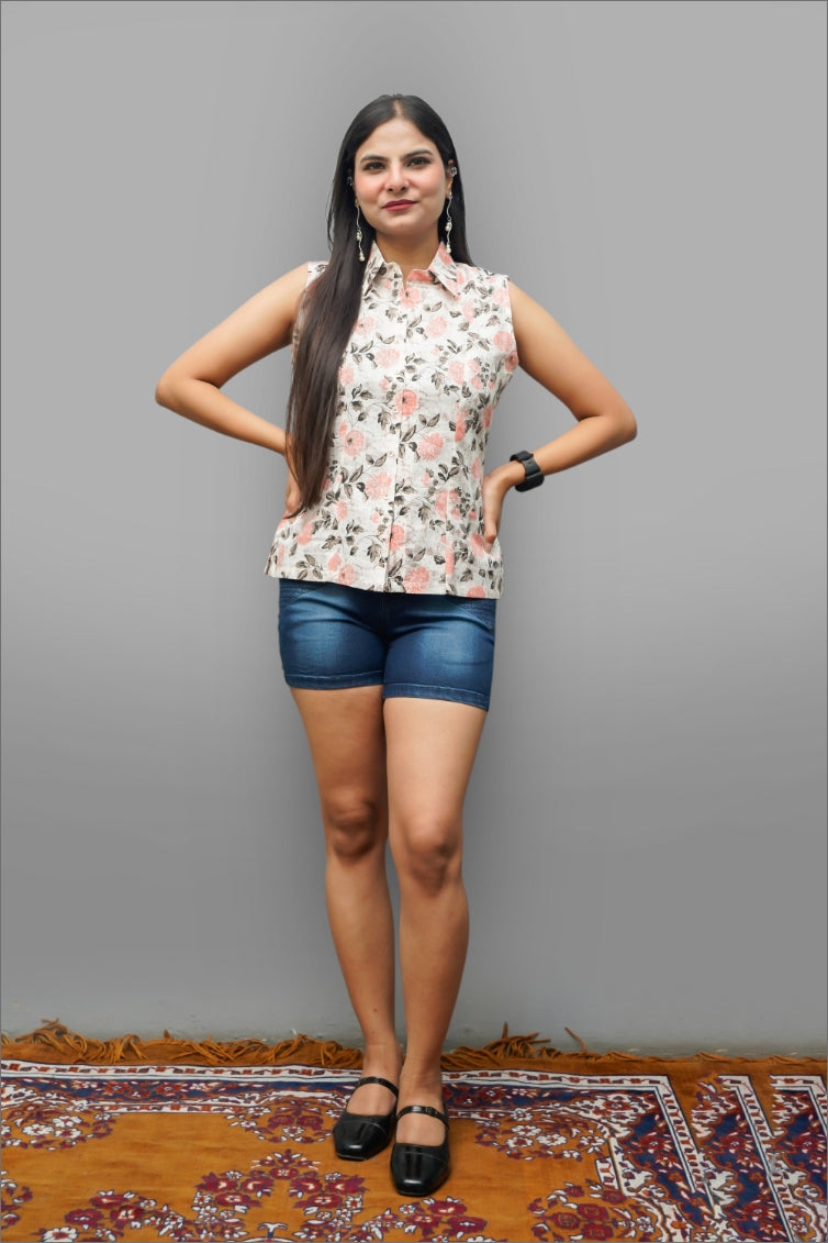Stay cool and stylish with this Cambric Cotton Printed Sleeveless Shirt, designed for effortless comfort and everyday charm. Crafted from soft, breathable cambric cotton, this lightweight shirt offers a smooth finish and a crisp feel that keeps you fresh all day long.