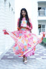 Flaunt your fashion sense with this classy casual printed full circle skirt & dolman sleeves blouse with a side drawstring tie-up. This look is Best suited for a friend and family get-together. Complete this head-turning outfit with heels and stylish hanging earrings.