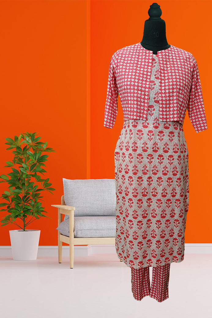 Make style your fashion statement with this unique Pink Block Print Kurti Pant with Coti. This attractive and comfortable set is sure to set you apart in the crowd.