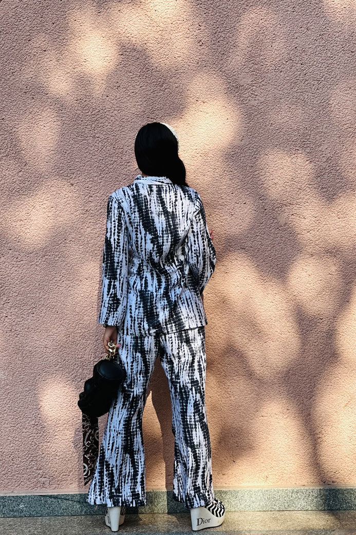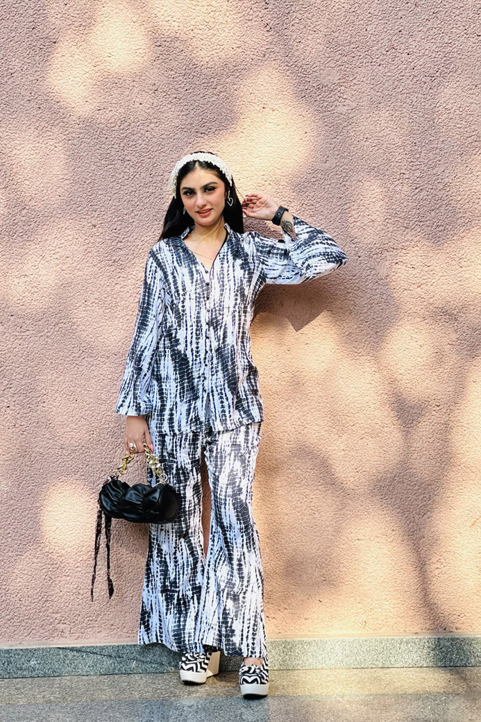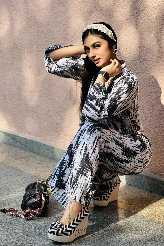 Black & White Shibori Co-ord Set Fabric: Rayon