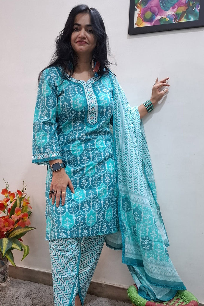 Color - Sky Blue, Teal, Green (Bagru Print)