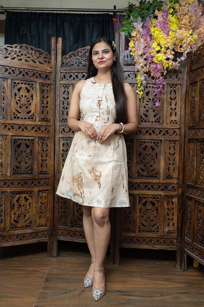 Style your fashion statement with this unique Cotton Cambric Nails Dye Line Sleeveless Short Dress. This attractive and comfortable dress will set you apart in the crowd.