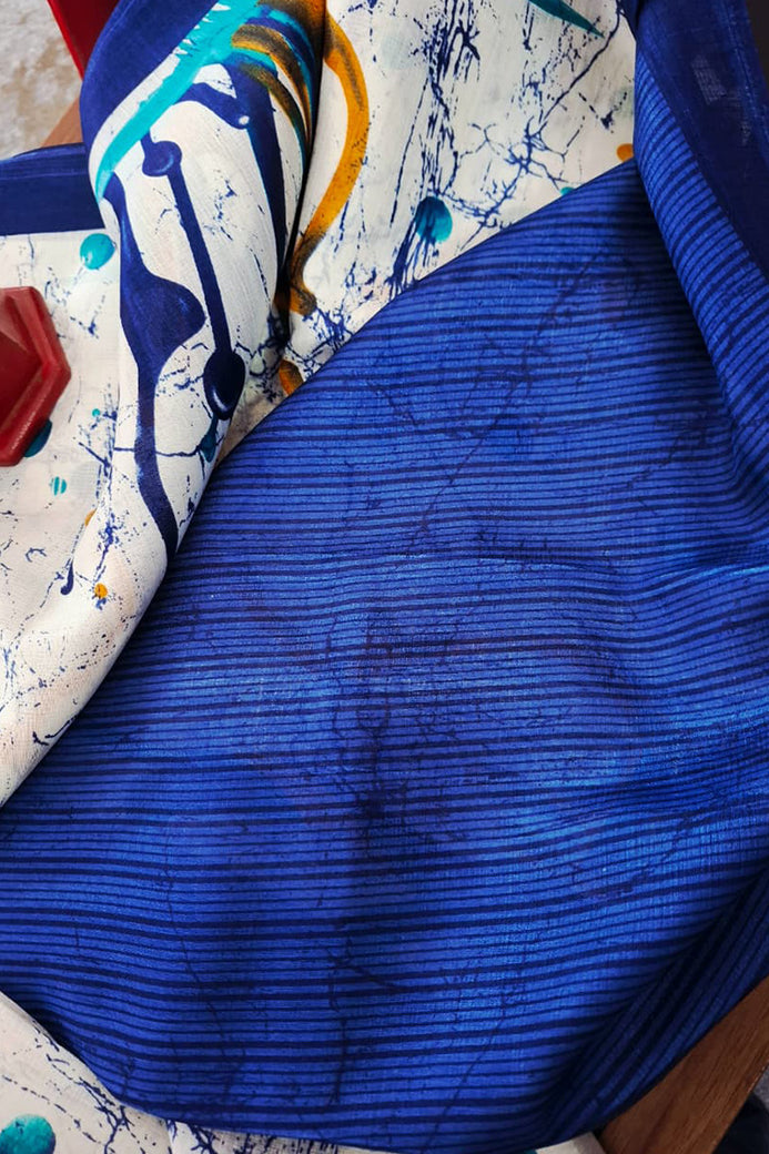 Digital Prints Khadi Cotton Saree with Blue Blouse Piece