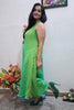 Elevate your evening look with this show-stopping halterneck dress in a rich peacock shade. Crafted in luxurious satin-georgette, it features an asymmetric hemline that adds drama and movement. The halterneck neckline highlights the shoulders and back, making this dress perfect for special occasions, cocktail parties, or evening soirées.