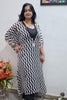Step into elegance with this long, flowing kaftan set crafted in georgette satin — a fusion of sheer glamor, delicate lace adornments, and traditional kaudi accents. Complete with a full-coverage black slip and matching pant, this ensemble offers depth, grace, and comfort for your next special occasion.