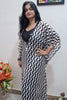 Georgette Satin Long Kaftan with Lace Detailing and Kaudi Attached with Black Slip and Pant