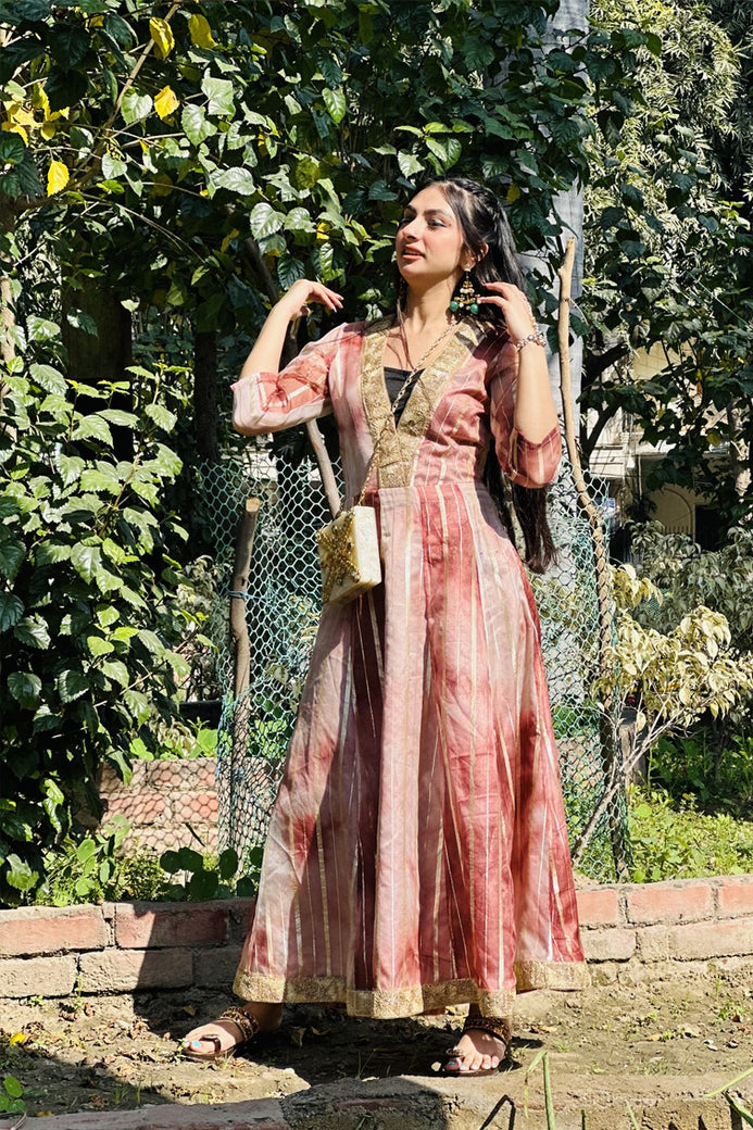 If you are a fashion enthusiast and love to explore new styles then this Tie Dye dress is the one for you. It has beautiful lace on its V-shaped neck and bottom. Perfect dress for wedding functions.
