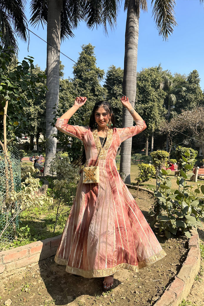 Tie Dye Print Long Dress Fabric: Lurex Organza