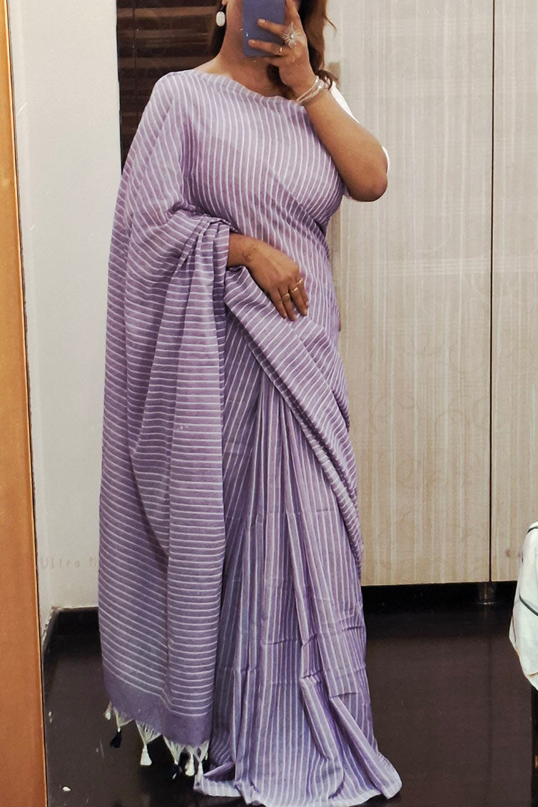 Wrap yourself in delicate artistry with this Pastel Striped Handloom Cotton Saree—a graceful blend of soft stripes in serene pastel tones, meticulously woven into breathable pure or mulmul cotton for comfortable sophistication.