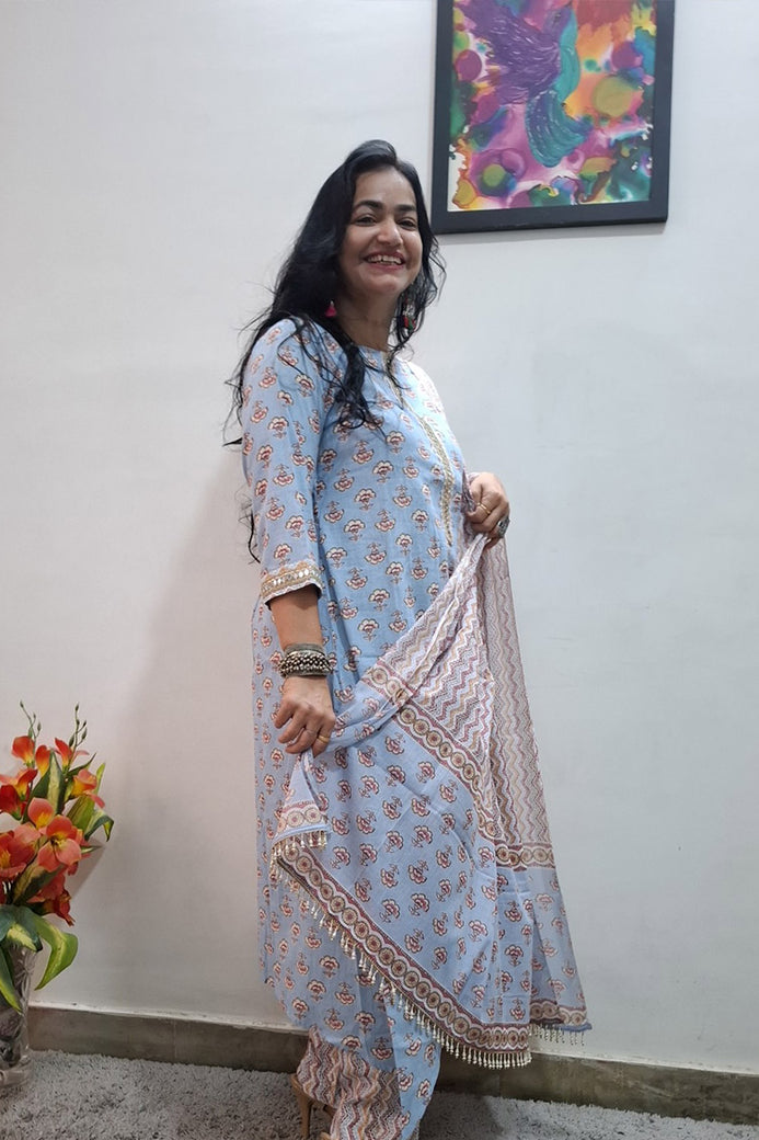 Color - Light Blue and Light Yellow Printed(Bagru Print)