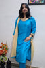 Raw Silk Kurta Blue Suit with Pant and Chiffon Dupatta with Lace Detailing