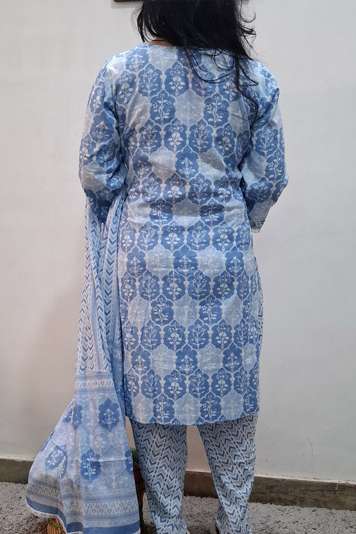 Infuse your ethnic wardrobe with this delightful Bagru print combo — a short kurta enriched with artisan work on the neckline and sleeves, paired with a stylish dhoti bottom and coordinated dupatta. Perfect for festive gatherings, casual celebrations, or diurnal elegance.