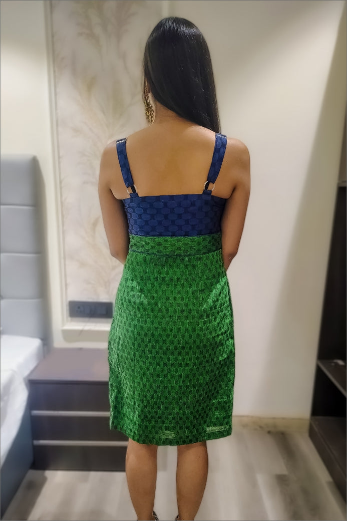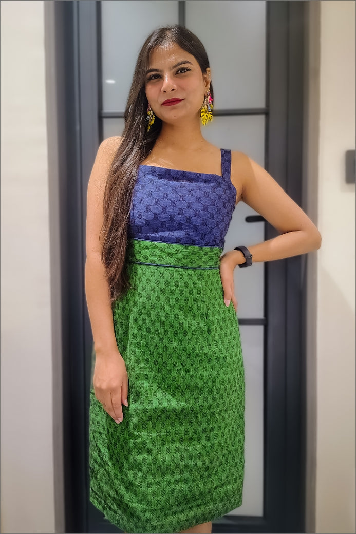 Elevate your wardrobe with this exquisite Handloom Green and Blue Dress, a perfect blend of tradition and contemporary elegance. Crafted with care by skilled artisans, this dress showcases the timeless beauty of handloom weaving.