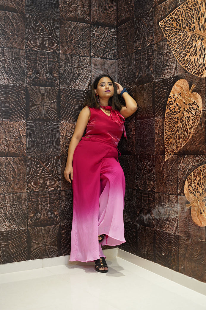 Double Shade Palazzo with Tie Knot Top-Colour:Shaded Pink
