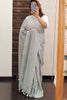 Grey and White Stripes Handloom Cotton Saree with Plain Blouse Piece
