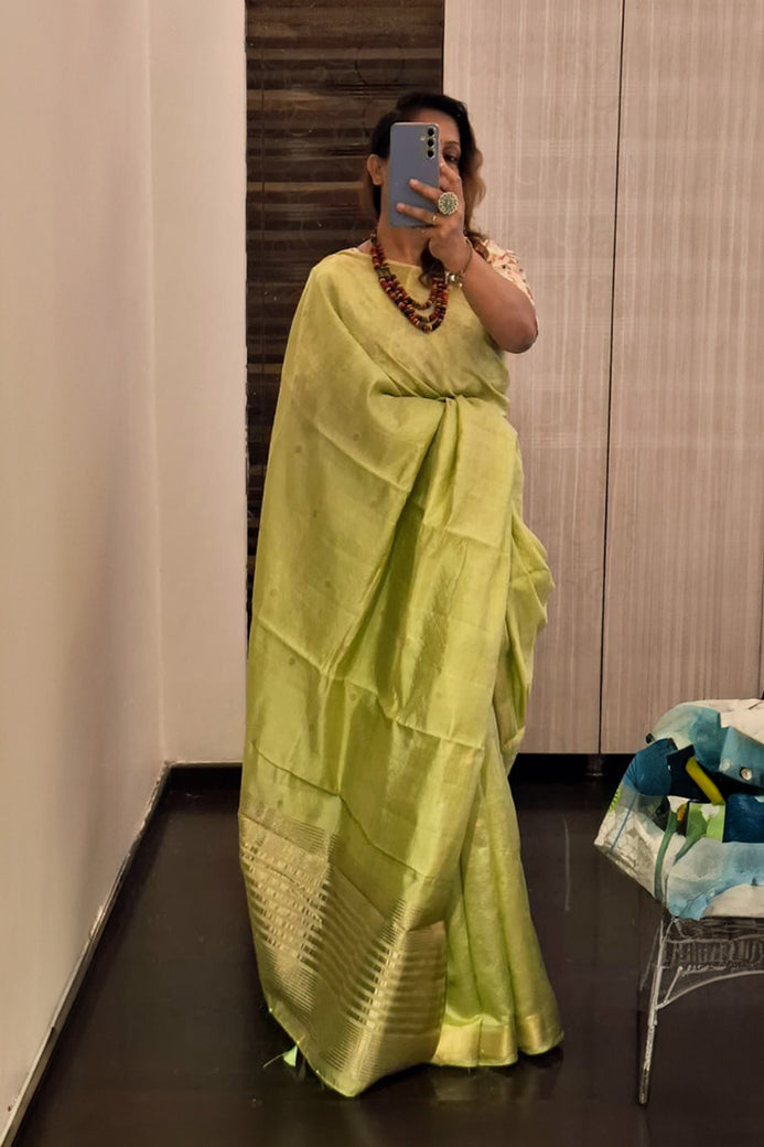 Light Green South Cotton Silk Saree with Pink Blouse Piece
